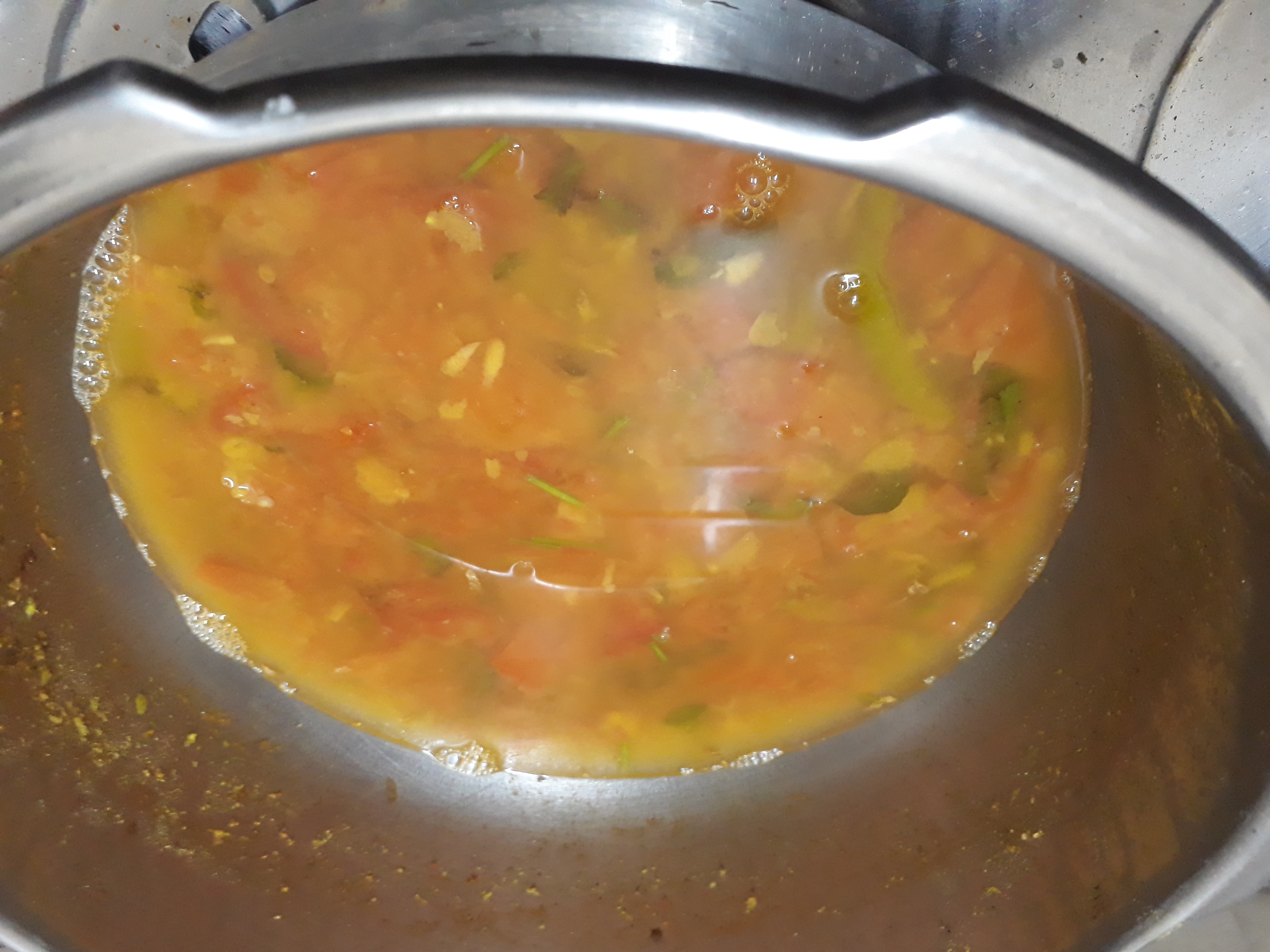 - In a 2 Ltr Pressure Cooker add all the ingredients except orange juice, seasoning and coriander leaves.
